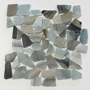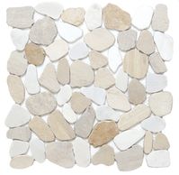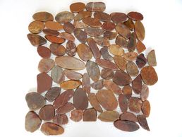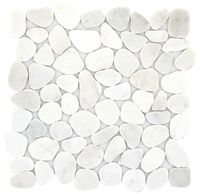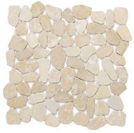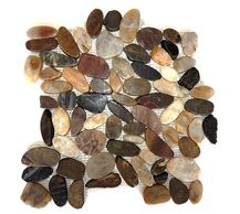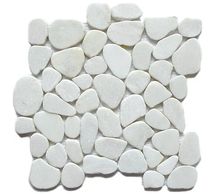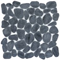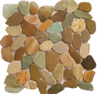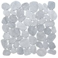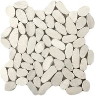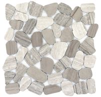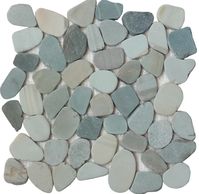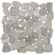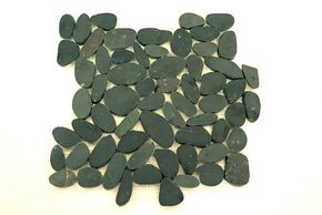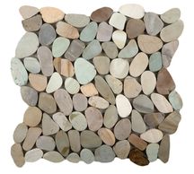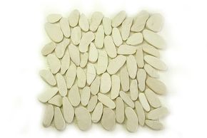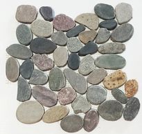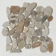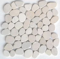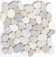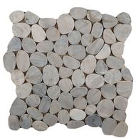 natural stone that is fabricated into an intriguing pebble configuration. An array of solid colors and blends are available in a subtle honed finish on 12”x12” interlocking mesh.